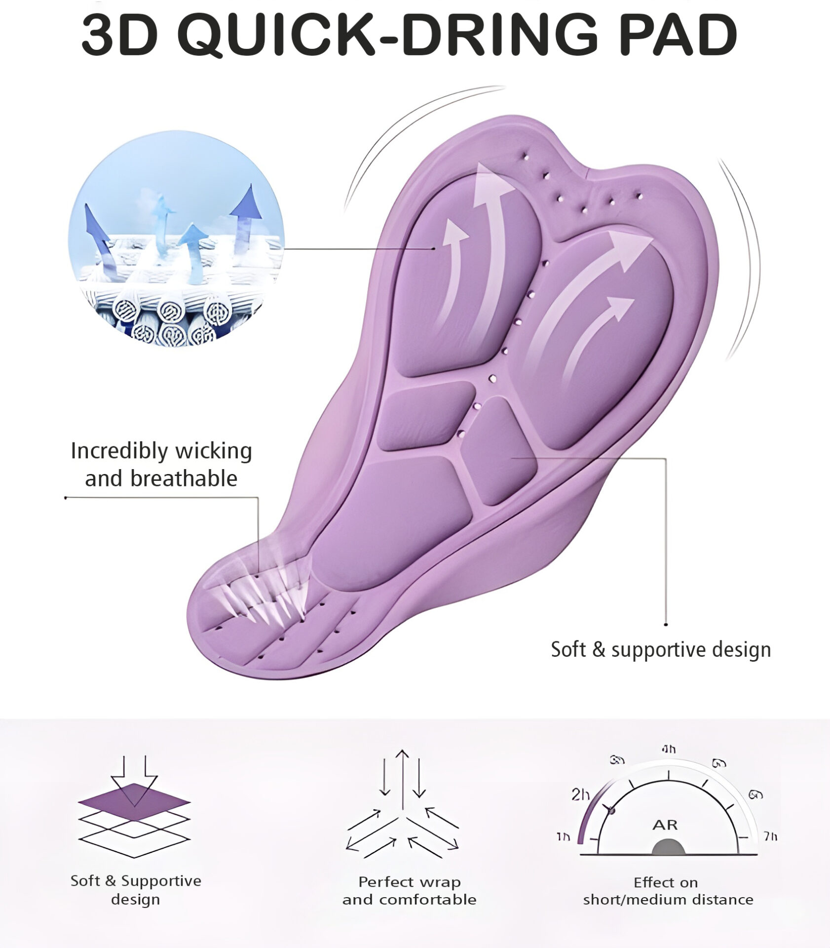 This women’s one-piece sports suit by AR Sports features a foam-cushioned pad that provides chafe-free support during cycling. The lightweight, slim design ensures no added bulk and offers quick-drying performance after swimming.